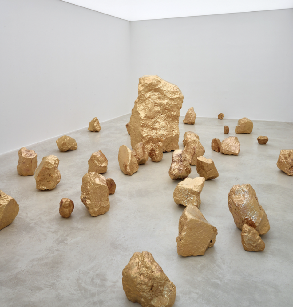 The Mexican artist Bosco Sodi lives between Oaxaca, Mexico, and New York City, and creates large paintings and beguiling sculptures that capture his Mexican heritage while channeling the natural world. In his paintings, Sodi layers raw pigment with sawdust, pulp wood, and natural fibers, building textured surfaces that look like cracked earth viewed from above. For sculptures, Sodi often takes dirt from the ground, mixes it with water and sand, and makes clay. The idea? “Controlled chaos,” he once said. “Something that is completely unrepeatable.” On view in Antwerp are Sodi’s deeply textured and, in this exhibition, deeply black paintings, which speak to Sodi’s sculptures in the center of the space, alchemic formations of golden stone. —E.C.