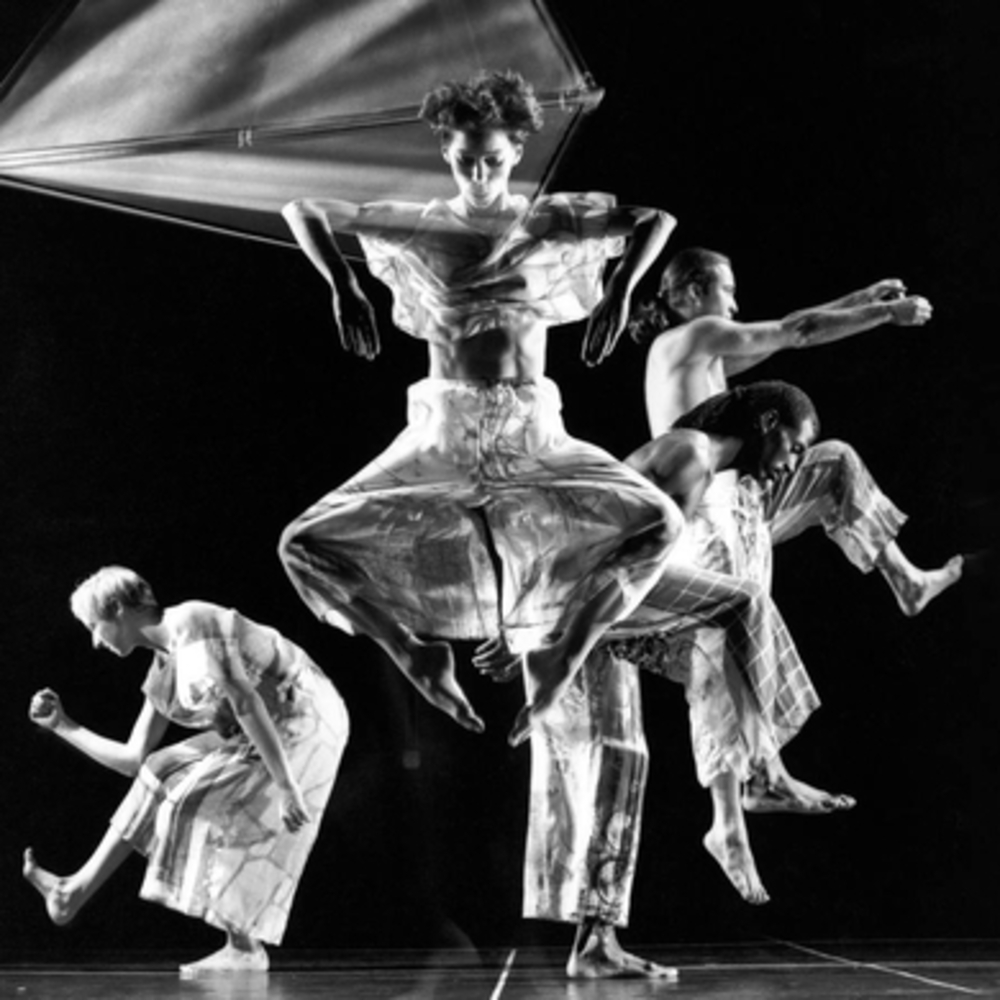 For a decade beginning in their early, striving, Black Mountain days, Robert Rauschenberg served as Merce Cunningham’s set, costume, and lighting designer in what he called “the most excruciating collaboration, but the most exciting, because nobody knew what anybody else was doing.” His collaborations with Trisha Brown extended for decades. So, for the artist’s centennial this year, the Trisha Brown Dance Company is touring nationally with a program of dances in which Rauschenberg, Brown, and Cunningham came together. The Cunningham contribution, Travelogue (1977), demonstrates a shared love of the unlikely conjunction. It features Rauschenberg’s mounted bicycle wheels (big wink to Duchamp) and tin cans accessorizing a dancer’s legs like jangly chaps. For Brown, Rauschenberg emphasized the ephemeral. The scrim overhead for Set and Reset (1983) broadcasts scraps of what is by now very old news as the dancers perform a disappearing act below. —Apollinaire Scherr