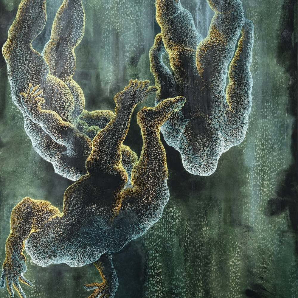 Didier William was born in 1983 in Port-au-Prince, Haiti. Looking for a different life, his family soon moved to Miami, where he was raised on the city’s north side. As William grew up, he became preoccupied with immigration, Afro-Caribbean history, and otherness. William creates powerful paintings that often feature mottled human figures, their skin a pattern of tight-knit eyes—vodou symbolism from the Caribbean. This solo show presents his latest series, “Things Like This Don’t Happen Here.” —Elena Clavarino