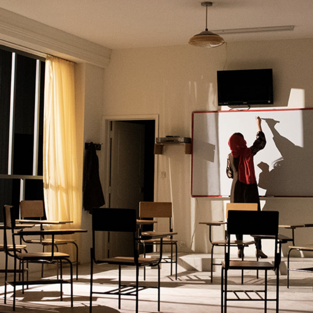 The drama at the center of Sanaz Toossi’s newest play, English, begins with one phrase: “English only.” Set in Karaj, Iran, in 2008, it follows four adult students who are studying for the TOEFL—the Test of English as a Foreign Language. As the teacher, Marjan, leads the class through various exercises, the students slowly reveal why they want to learn the language. Over the six weeks of the course, flirtations and rivalries emerge as well. The play’s world premiere production is directed by Knud Adam. —Jensen Davis