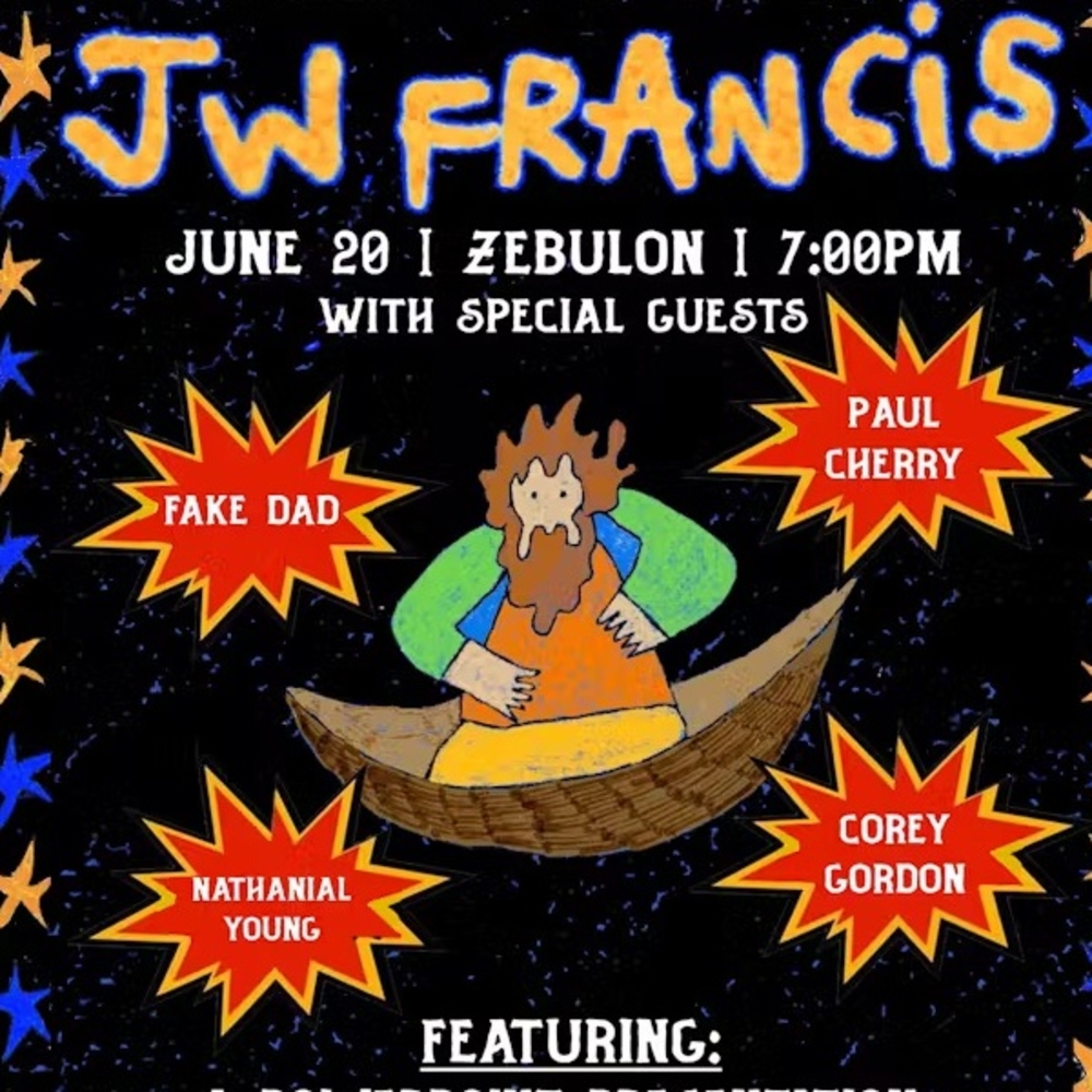 From New York to LA, lo-fi indie rocker JW Francis has traveled across the country and is living in an RV now. He has expanded his craft with his travel, and along with new music he will debut a couple of fables he wrote at this show. His most recent EP, ICED MERLOT, came out in March of this year and with more new songs being introduced to his fans, there is bound to be energy and anticipation for the next chapter in the room. Fake Dad, Paul Cherry, Nathanial Young, and Corey Gordon are special guests at the show, and last but not least, here’s a strange but enticing aspect: there will be a PowerPoint presentation telling us about his time canoeing the great Mississippi River. —Henry McGrath