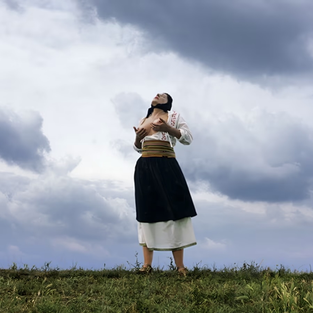 Film still from Marina Abramović’s Women Massaging Breasts, 2005.