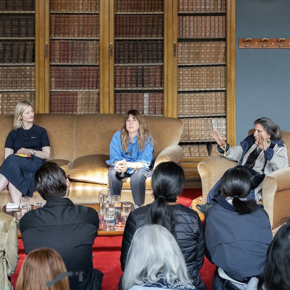 Panel host Lou Stoppard with Lauren Elkin, Veronica Raimo, and Geetanjali Shree at the Miu Miu Literary Club in 2025.