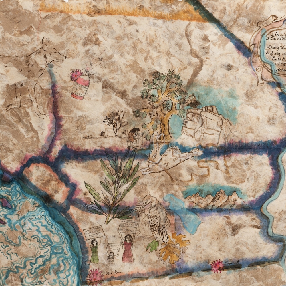 Sandy Rodriguez, Map for the Migrants Captured, Caged and Abused in I.C.E. Detention Centers in So. Califas, 2020-2021 from the Codex Rodriguez-Mondragón.