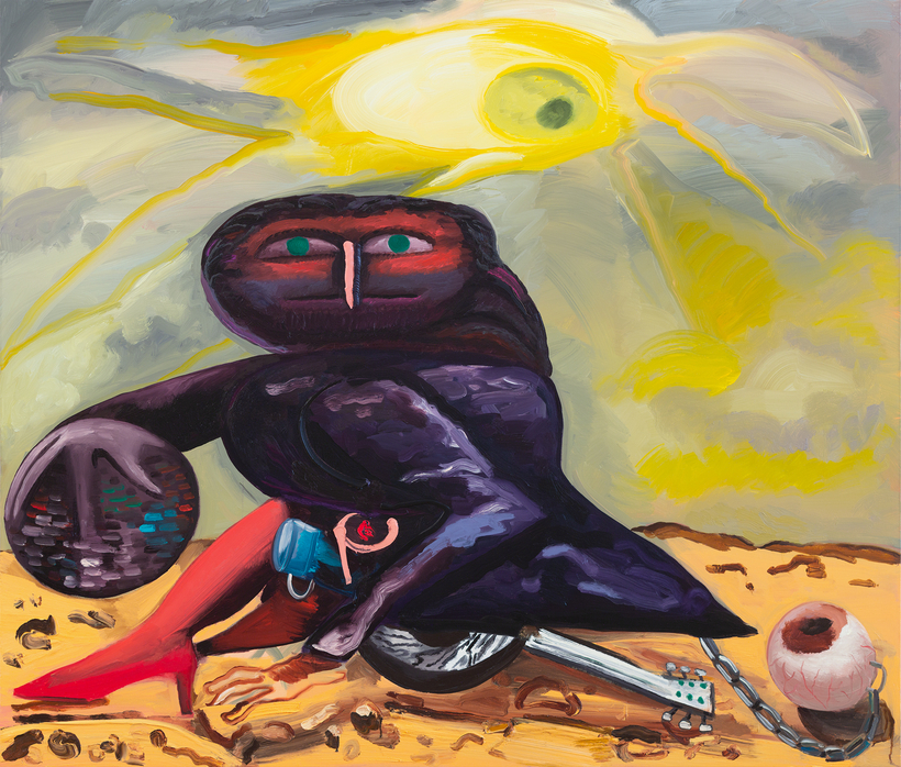 Everything and Nothing, painted in 2020, is part of American artist Dana Schutz’s first one-woman show in London, opening on September 16 at the Thomas Dane Gallery. She once painted a series about the last man on earth. Is this now the last woman? The exhibition is titled “Shadow of a Cloud Moving Slowly,” and it is impossible not to see some of these works through the prism of the current pandemic. Known for large, colorful canvases that pose existential questions, as well as for her keen self-analysis, Schutz welcomes multiple interpretations of the symbolic elements she commingles with tangled bodies. She wants the viewer to “finish the painting,” which means that the guessing game is part of the fun.