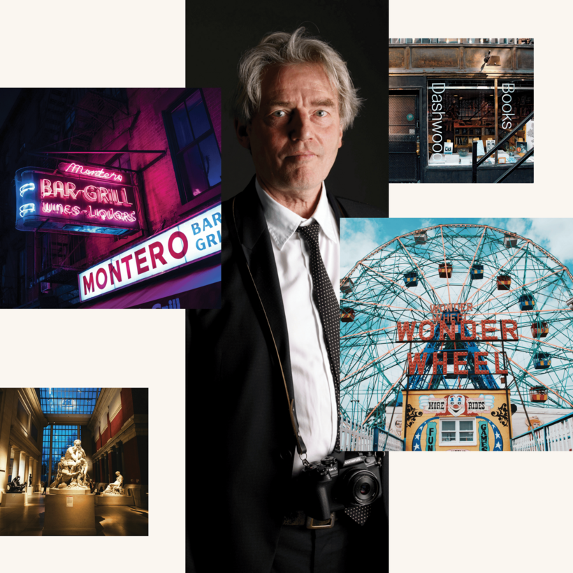 Before long, Jones signed on to work for Vanity Fair. At the magazine, his job was to attend parties and snap pictures of the smart set—from Iris Love and Brooke Astor to Imelda Marcos. Though Jones eventually moved back to Britain in the 1990s, he still visits New York to catch up with old acquaintances and stop into his favorite cafes, galleries, and bookstores. Ahead of presenting his photographs at Photo London, Jones shares his favorite spots in New York City.