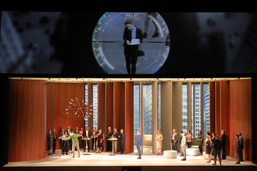 With Der Freischütz (The Marksman), Carl Maria von Weber laid the cornerstone of German romantic opera. In the Russian director Dmitri Tcherniakov’s new take, foresters and huntsmen from medieval Bohemia foregather in the sky lounge of a multinational headquartered in a city very much like Frankfurt, trading black magic for sinister mind games.