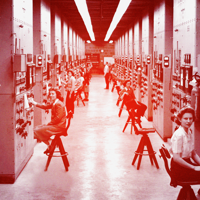 The similarly giant uranium factories at Oak Ridge also had nearly 100,000 people living and working away in the mountains outside Knoxville, on sparsely inhabited land that just three years earlier had been all but untouched for a century. Construction teams built thousands of homes a month to keep up with the rapidly expanding workforce. Amid labor shortages, many of those workers who operated the calutrons—an instrument developed by the American physicist Ernest O. Lawrence for separating isotopes of uranium—were female high-school graduates from the surrounding rural communities. Tennessee Eastman, the industrial contractor brought in to manage the plants, gambled that the “Calutron Girls” could be taught the machines as well as any Ph.D. “The young ‘hillbilly’ girl operators were outproducing [the] scientists,” marveled Colonel Kenneth D. Nichols, one of the Manhattan Project’s leaders.