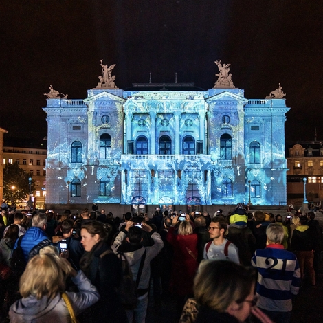 Dazzling projections on the façade of the Zurich Opera House encapsulate Wagner’s “Ring” cycle for neophytes and devotees alike