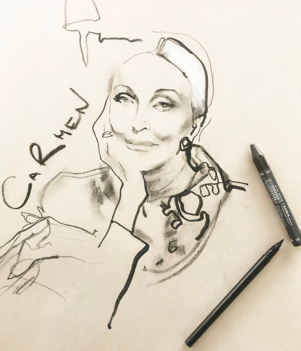 I started to draw, and as I let the evening take on its own rhythm, I found myself reflecting on the fashion industry’s bad rap. True, it has its share of egomaniacs and airheads, but it has also brought me into the orbit of these women for whom integrity and humor and style and substance are second nature. And that’s before you get to the beauty.