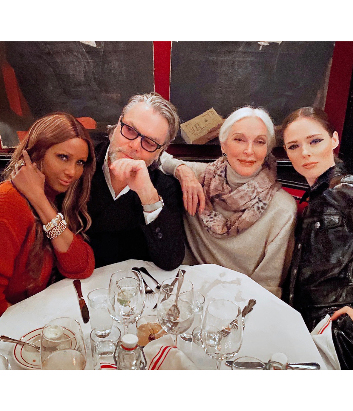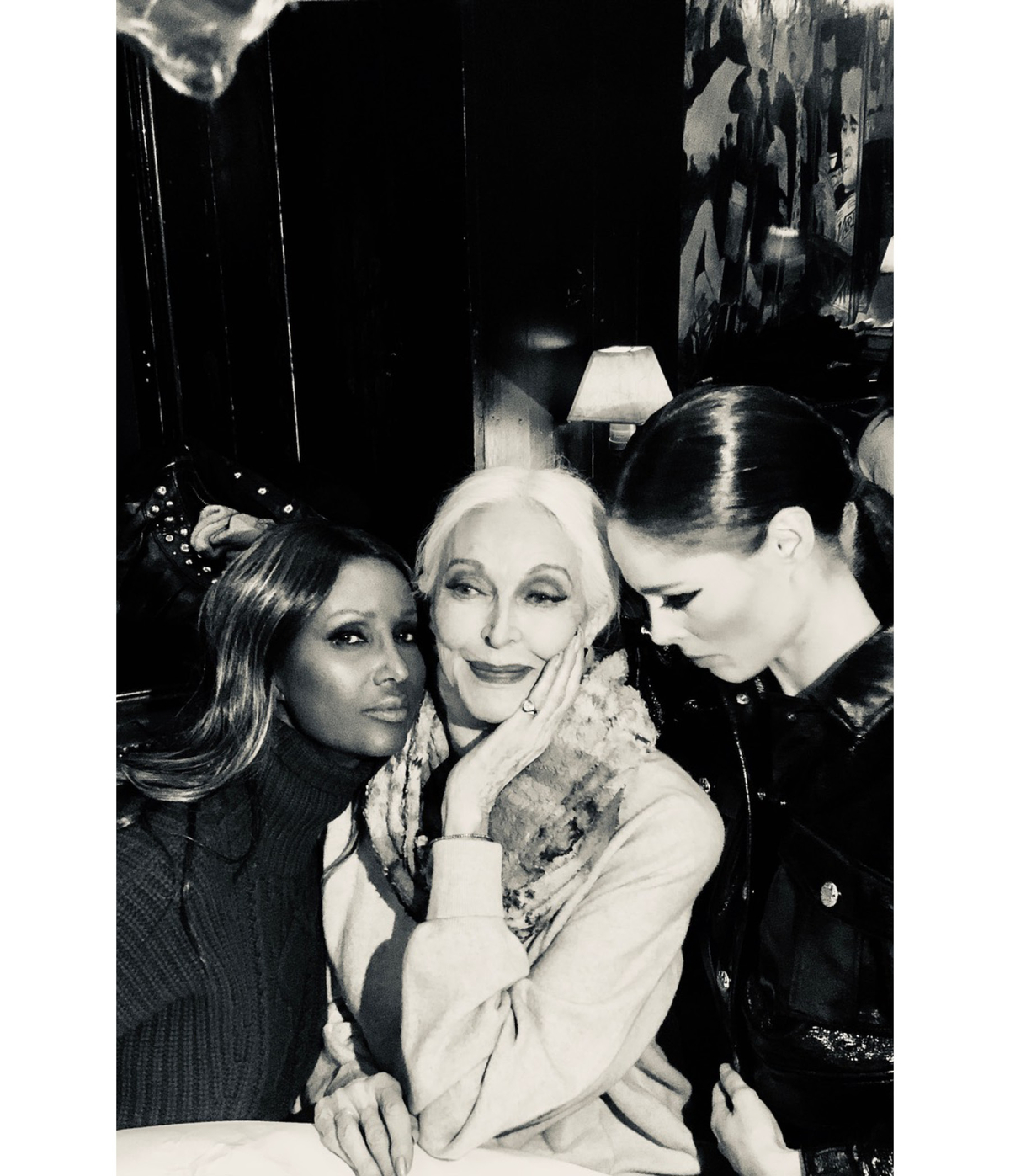 It was the first snowstorm of the season on the evening that I had dinner with Carmen Dell’Orefice, Iman, and Coco Rocha at the Waverly Inn in Greenwich Village. I arrived at 7:30 for our 8 o’clock rendezvous, but by the time Iman materialized five minutes later—her business meeting ended early—I had already been offered a drink by a fellow patron, who overheard my surname and convinced himself that I hail from Downton Abbey. “I should never have lent them that house,” I say, thanking him. I am loath to disappoint.