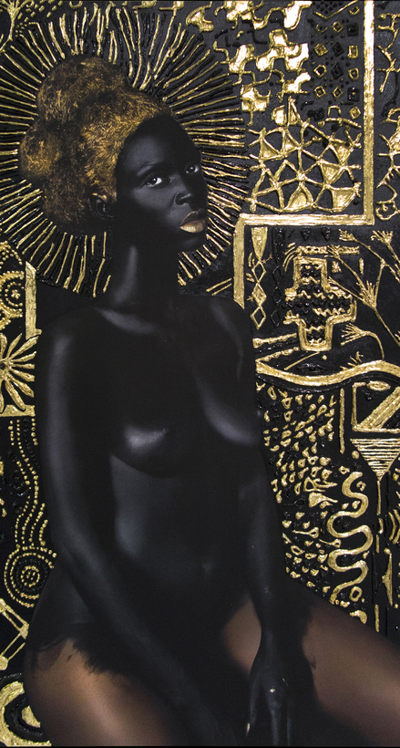 The art of Lina Iris Viktor revolves around blackness: the color, the pigment, Africa’s complex colonial legacy, a state of being. She strips it down to midnight darkness; she adorns it with gold; she veils and eroticizes it with screens. “Some Are Born to Endless Night: Dark Matter”—opening next week at Autograph, a gallery in London’s Hackney neighborhood—is Viktor’s first major solo show in the U.K. and features more than 60 works. The full range of the Liberian-English artist’s practice is on view, including the self-portraits that have created such a stir.