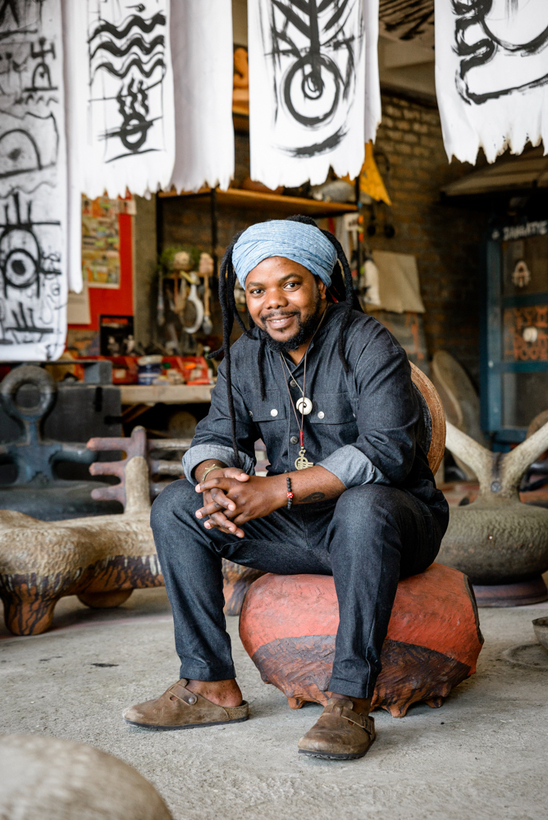 Andile Dyalvane grew up on a farm, looking after his father’s cattle in the Eastern Cape. Today he is an artist whose primary medium is derived from the earth. The Cape Town–based ceramist, a co-founder of Imiso Ceramics, has become known as South Africa’s master of clay. His intricate ceramic pieces, shaped by a profound spiritual connection to his Xhosa ancestors, hold and share narratives. Since his first solo international show, in 2016, Dyalvane has continuously sought to preserve his language, identity, and cultural traditions. His new body of work, on show at Cape Town’s Southern Guild gallery, is no exception.