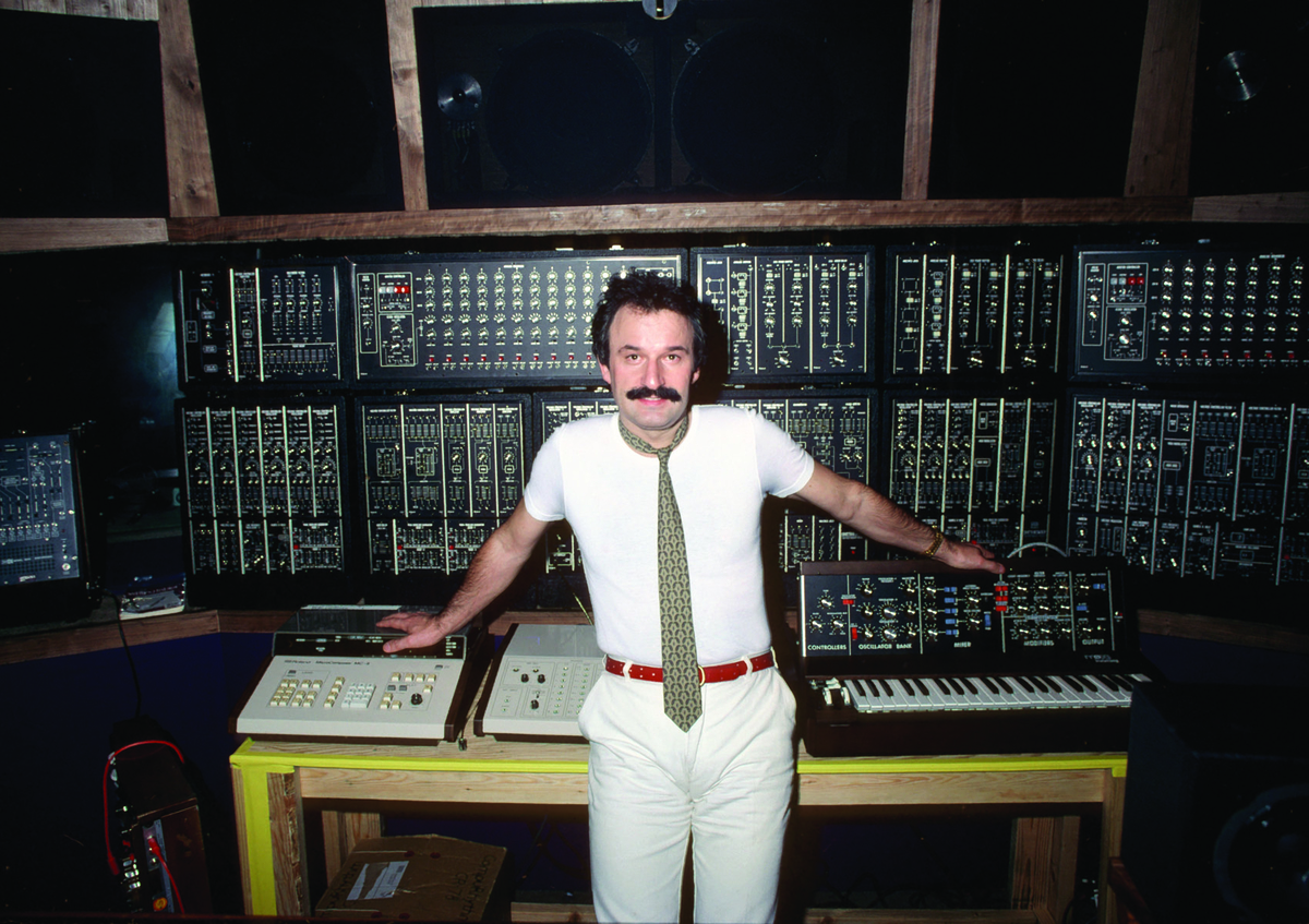 The combination of songs like “I Feel Love,” with sirens, whistles, strobes, gyrating dancers, and drugs, was the paradigm of the disco experience. While Moroder helped shape this hedonistic world, he did not indulge himself. The producer only went to clubs to check out the latest songs, and neither he, Summer, nor Bellotte did drugs, smoked, or drank to excess, which partly explains their output of seven albums (two were double albums) in five years. “I don’t know,” Moroder said offhandedly, “I never had the urge.” Moroder’s urge was for all things electronic; his 1977 album, From Here to Eternity, even had a sentence on the back cover announcing proudly, “Only electronic keyboards were used on this recording.”