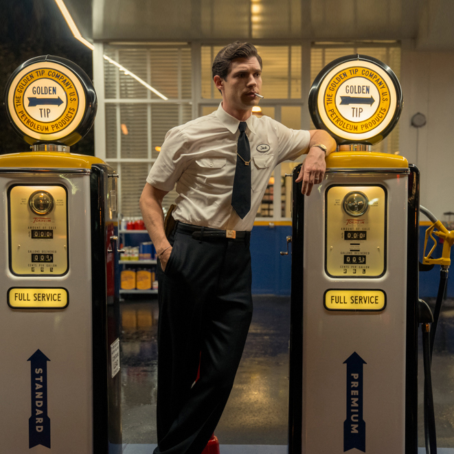 And as Murphy delves into and pointedly rewrites the history of Tinseltown in its late-1940s heyday, he gives us a vision of showbiz steeped in illicit sex. Ernie the gas station manager (Dylan McDermott) is pimping out his pump attendants to stars and studio workers. Or sometimes showbiz figures whose homosexuality is against the law; the composer Cole Porter, say, sitting expectantly with trousers off but garters on in a trailer on the forecourt.