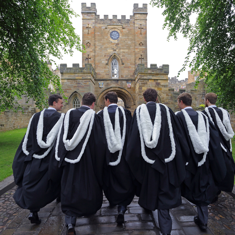Durham is a university for people who felt boarding school didn’t last quite long enough. A cobbled campus wrapped around a golden-stoned cathedral and an 11th-century castle, it is a collection of small, pally colleges that feel like distinct institutions in their own right. St. Cuthbert’s for the Rugby boys. St. John’s for the religious types. Hatfield for the red-trousered brigade. St. Hild and St. Bede for the trust-fund kids with drum-and-bass nights. When I was there, friends took to calling it “the Resort,” because the chummy venues and chocolate-box vistas reminded them of their second homes in Chamonix or Courchevel. (Another joked that the university was actually pretty diverse: “You’ve got Stowe boys, Etonians, Harrovians, Downe House girls, Marlburians … ”) It is cliquey, sporty, leafy, academic—the plummier, slightly dimmer younger brother to Oxford and Cambridge.