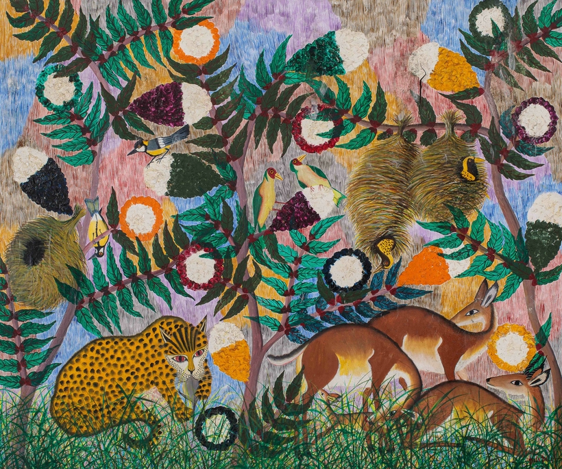 Danger often lurks in the paintings of Pilipili Mulongoy: a snake about to strike, a leopard primed to pounce. Meanwhile, the creatures’ prey—perhaps some busy butterfly or docile gazelle—are blissfully unaware of what fate holds for them. It is chastening to look at these tableaux, knowing that the 20th-century artist lived through an age of atrocities in Belgian-occupied Congo. The question of whether Pilipili’s works are allegorical cannot be answered by an auction. Nonetheless, Artcurial’s upcoming Paris sale—“The Artists of Le Hangar: The Origins of Contemporary African Art”—is an important one.