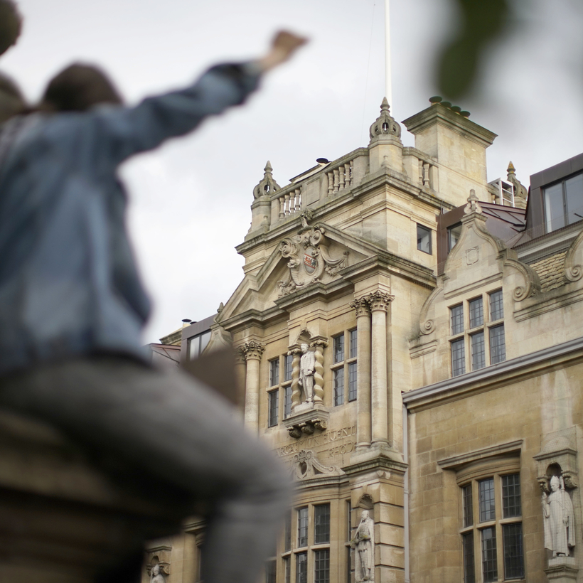 Last week, on Oxford’s winding main street, these two competing worlds collided. The clash centered on a statue of Cecil Rhodes—a historic donor to Oriel College and a controversial colonialist—which has become the subject of protests in recent years. Homemade banners have been flying below him since 2015, when the Rhodes Must Fall campaign denounced the monument as a totem of Oxford’s imperialist links.