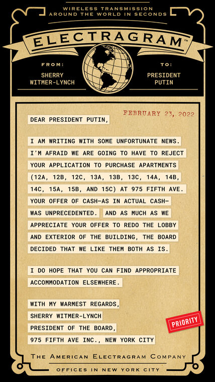 Fifth Ave. Pied-à-Terror Correspondence reveals Vladimir Putin’s plan to annex unlisted properties on New York’s Upper East Side