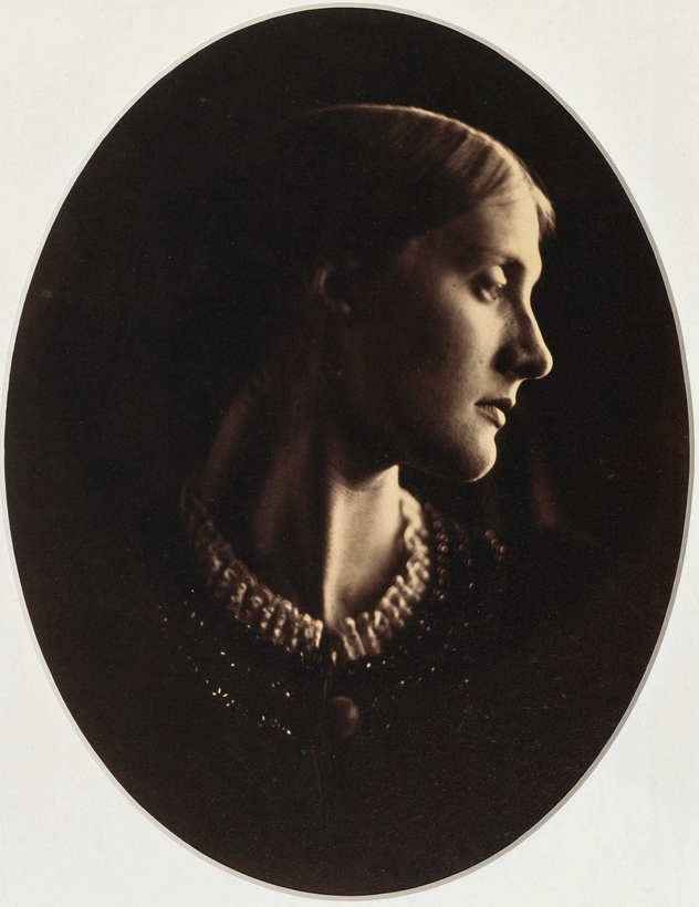 Cameron was born in Calcutta, India, in 1815, one of the seven famous Pattle sisters, all of whom were educated in France. She was known to have an eccentric nature but also a generosity of spirit. As a young bride in Calcutta, acting as a hostess for the governor general, Sir Henry Hardinge, Cameron led European society. On her return to England with her husband and children, she threw herself into London’s artistic circles. It wasn’t until Freshwater, at the foot of Alfred, Lord Tennyson’s garden, in a house the Camerons formed out of two fishermen’s cottages and named “Dimbola,” that her passion finally found its medium. From a standing start in a renovated chicken coop, and working with glass negatives, Cameron began her remarkable photographic practice.