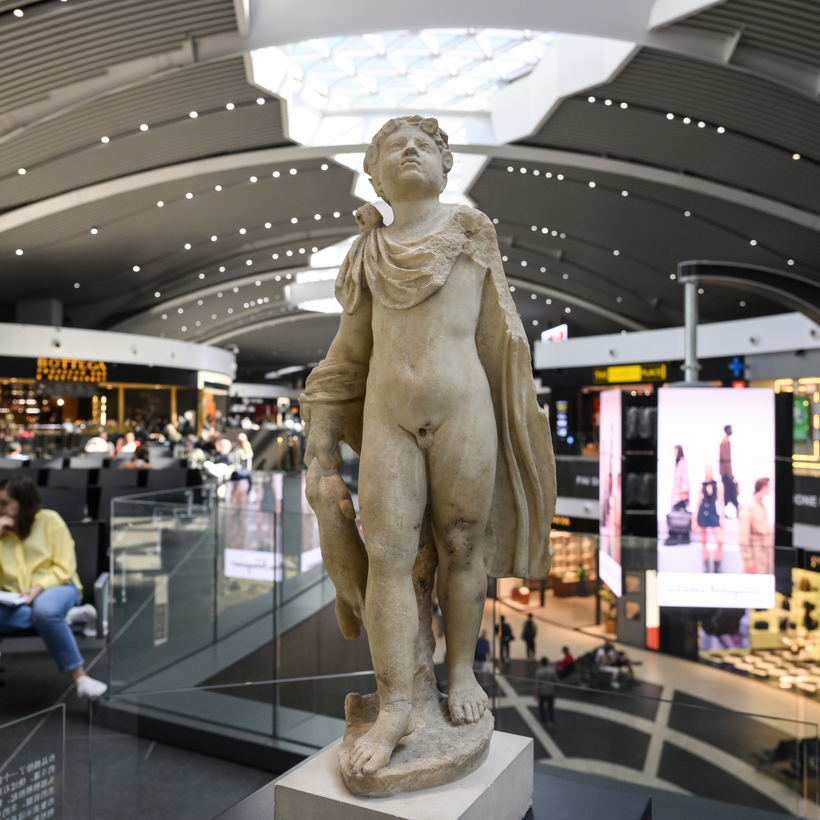 Works of art are ubiquitous. Terminal 1 is now home to Gian Lorenzo Bernini’s Salvator Mundi, a masterpiece of the 17th-century sculptor. While admiring some original statues from ancient Ostia lined up next to the moving walkways, I even bumped into Marco Troncone, the C.E.O. of A.D.R. Bent over to the ground, he was fixing a piston that somehow had come out of the floor, unwittingly providing the most effective ads for his company. (If the entire scene was staged to impress me, the two publicists showing me around deserve a promotion.)