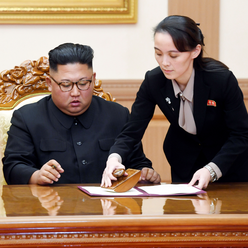 Kim’s head of protocol is Hyon Song-wol, once a famous pop star and, according to rumor, his ex-girlfriend. Former North Korean first ladies were never seen or even mentioned in the state media, but Kim’s wife, Ri Sol-ju, is routinely filmed and photographed with her husband. For influence and authority, though, none comes close to the most important woman in his life — his younger sister, Kim Yo-jong.
