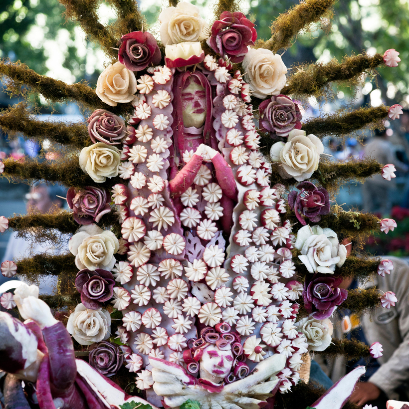 Oaxacans have farmed the oversize radishes since the colonial era, when the Spaniards brought over the magenta root vegetable in the hulls of their ships. In the late–19th century, merchants began carving them as a marketing ploy, and in 1897, Oaxaca City’s mayor, Francisco Vasconcelos, turned the practice into a festival to promote Christmas shopping. As the sculptures grew more elaborate, locals stopped eating the radishes and used them as decorative table centerpieces instead.