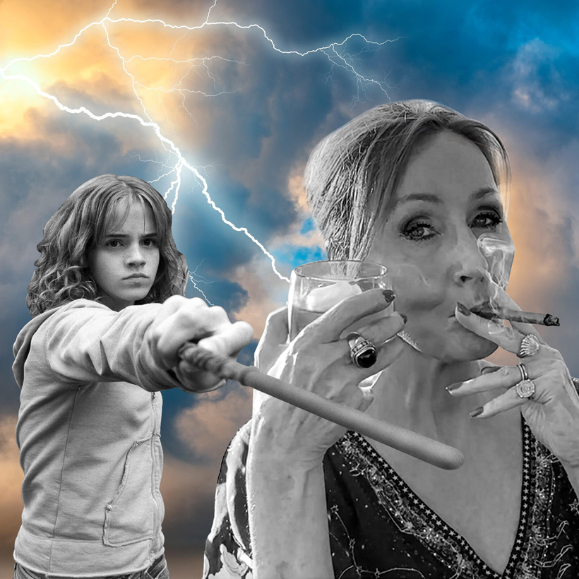 It may be alarming at first to wake up to curly-haired Hermione from Harry Potter being zapped, hard, by her creator, J. K. Rowling, as if in a wand-battle in which the young witch has both betrayed her old mentor and underestimated her powers.