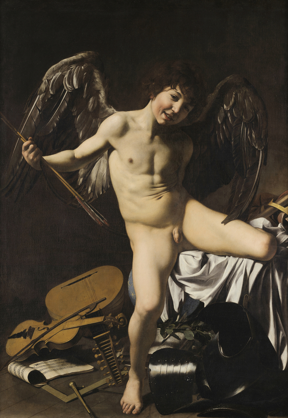 Looking at Caravaggio’s Victorious Cupid for the first time, it’s hard to escape the feeling that the instant one’s back is turned, the naked young boy in the picture will jump down out of the frame and run riot. Downright shocking in its life force, Caravaggio’s allegorical painting is unlike anything that came before or after. Indeed, it seems to bespeak some kind of Faustian pact.