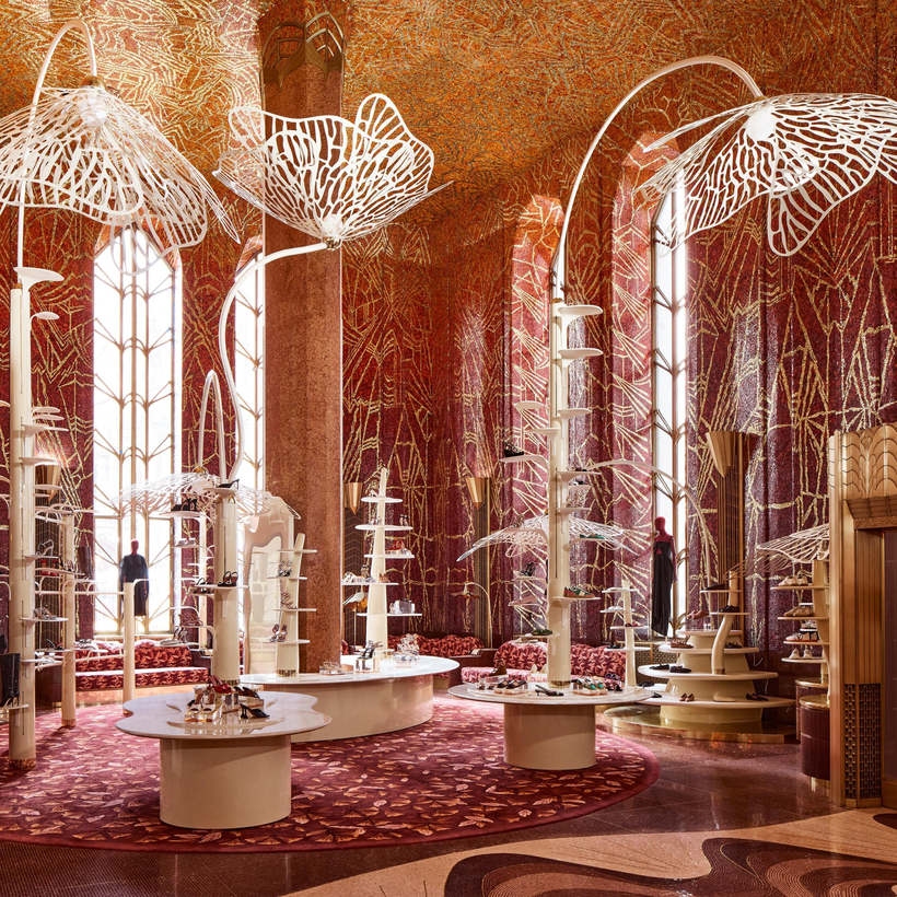 Granted, the clothes were still being hung on custom floral racks and Marni bags positioned on mushroomy marble tables for the March 21 opening, but the level of luxurious craftsmanship and fantastical detail was so extreme that even being in a construction site was wildly impressive. The landmarked Art Deco skyscraper is an architectural marvel that dates to 1931, and Gonzalez leaned into that era’s design.