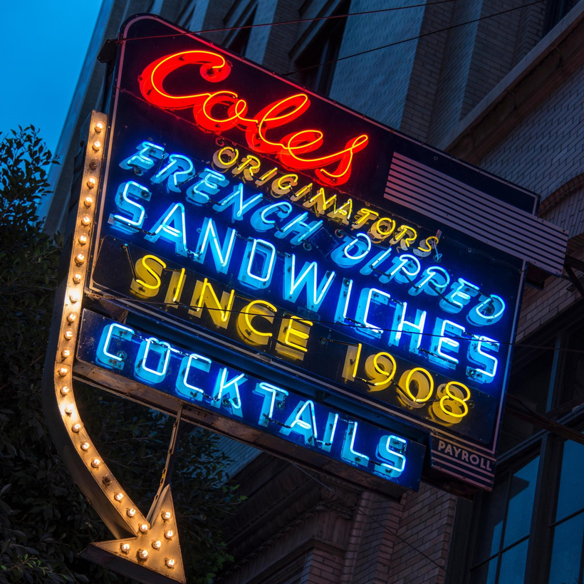 Whether it’s U.S.C. vs. U.C.L.A., the Crips and the Bloods, or Mötley Crüe brawling with Guns N’ Roses at the V.M.A.’s, Los Angeles is infamously factional. But its most aged beef is about beef. For more than a century, the two oldest restaurants in the City of Angels—Philippe the Original and Cole’s Pacific Electric Buffet—feuded over the true provenance of the French-dip sandwich, which (this much is undisputed) was first served in 1908. In Cole’s version, the eureka moment occurred when the original house chef soaked the bread in savory broth to soften it for a sore-gummed customer.