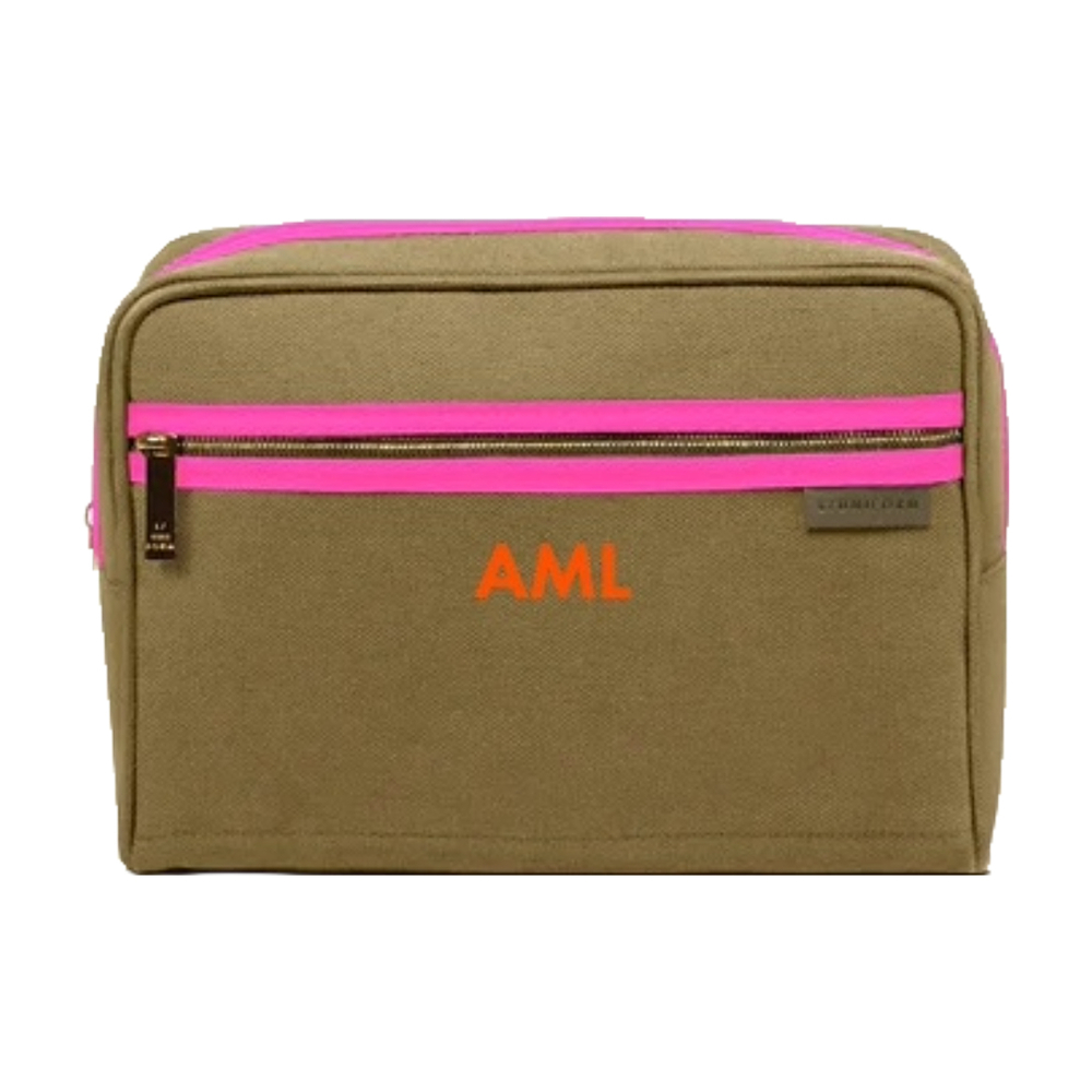 Canvas Toiletry BagThese canvas toiletry bags look more expensive than they are, and you can pick among a number of colors for the bag, trim, and monogram. Meaning they’re not uniform at all.
