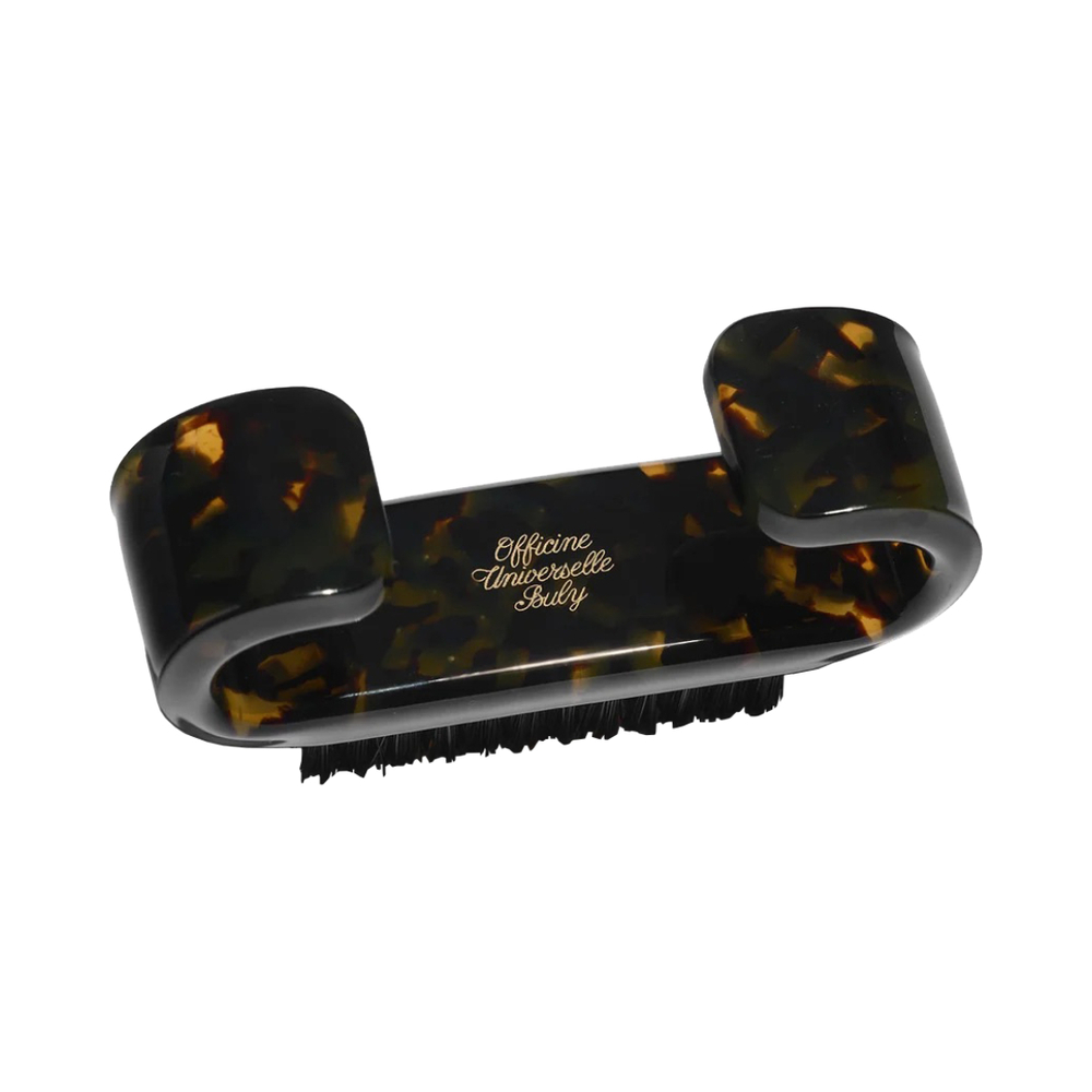 Acetate Nail BrushI have a weakness for everyday objects treated with style, and this nail brush is perfection. It resembles tortoise shell, has charmingly curved handles, and is stamped with the store’s logo. The brochure says it restores “nail nobility” with “respectful” boar bristles. Poetic!