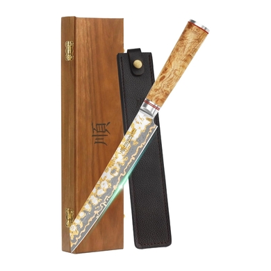 “A very sharp carving knife is an essential tool when working with large cuts of meat. I use a Japanese Sujihiki, which slices right through anything.”