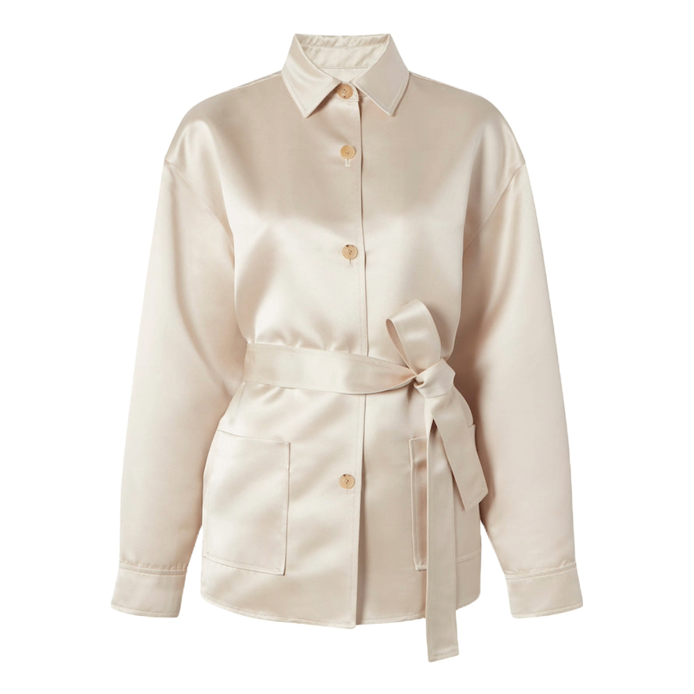 The Satin Studio Jacket“Our voluminous, workwear-inspired jacket in duchesse satin. For an evening out, just add a pair of pants—or go without.”