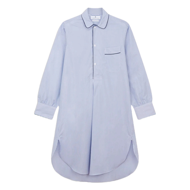 Blue Fine Bengal Stripe Piped Cotton Nightshirt