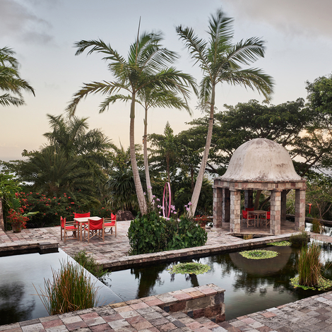 Check into Brice and Helen Marden’s bohemian hideaway on a scenic hilltop in Nevis